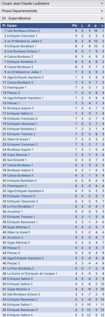 La prochaine rencontre de l’équipe Créon 6, dans le Championnat Interclubs de Régionale 2 du Groupe 8, aura lieu le dimanche 7 décembre 2025 à Libourne. L’équipe Créon 6 sera opposée à l’équipe Échiquier Libournais 2.